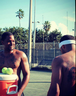 VogueNote: But aren't we happy he didn't get Rihanna tatted on him? They're soooo CUTE!! We need a nickname for them...any suggestions?